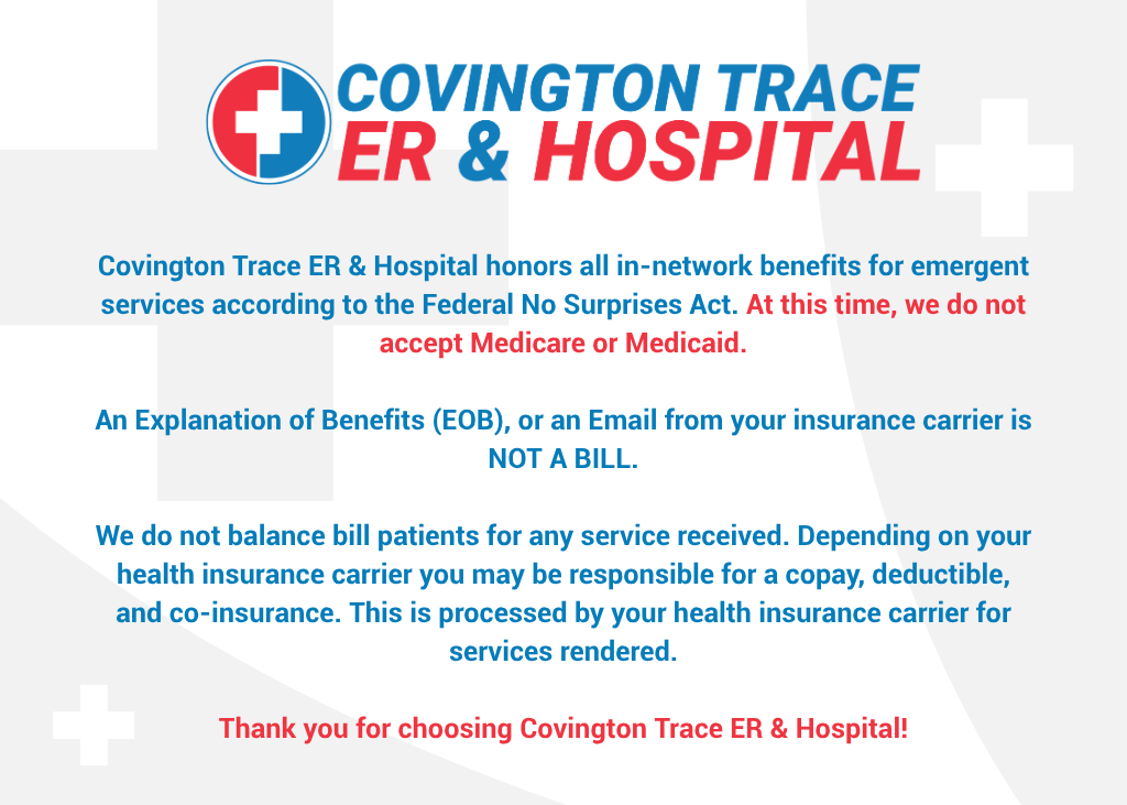 Covington Trace ER & Hospital features expert ER care, shorter wait times, and an unwavering commitment to the wellbeing of our patients.